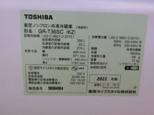 【商品名】 東芝ノンフロン冷凍冷蔵庫 3ドア