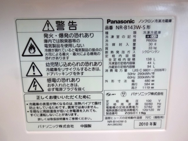 【型番】 NR-B143W-S